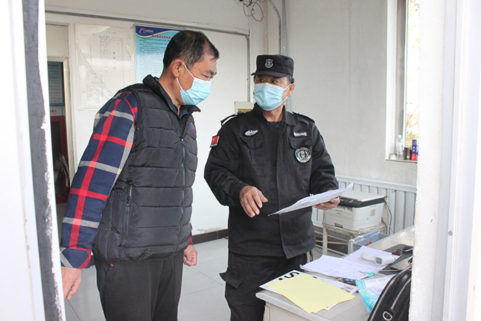 因工作需要往返二廠、三廠的人員,值班保安都會認真查看工作證,耐心叮囑戴口罩,途中不要去其他地方,避免接觸其他人員。
