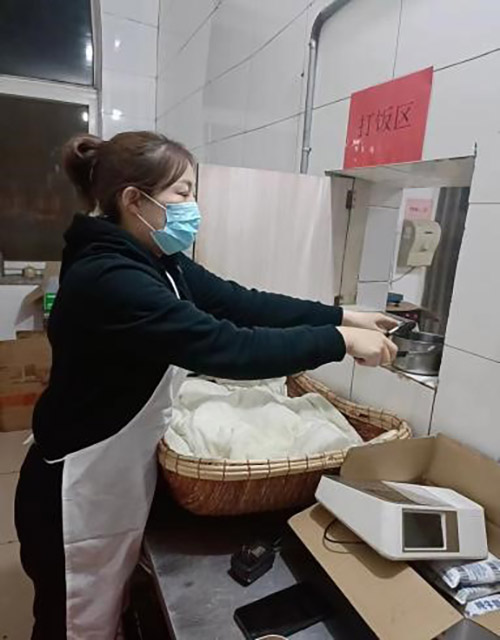 以前后勤保障部每天只準(zhǔn)備兩頓飯,而且夜班吃飯的人不算多,可現(xiàn)在500多人封控在單位,一天要為這些人準(zhǔn)備三頓飯,工作量增加了兩倍多。初文一邊切著菜,一邊笑著說:“廚師大哥們和幫廚大姐們起早貪黑,咬牙堅持工作,我們不僅要讓大家吃飽還要吃好。”