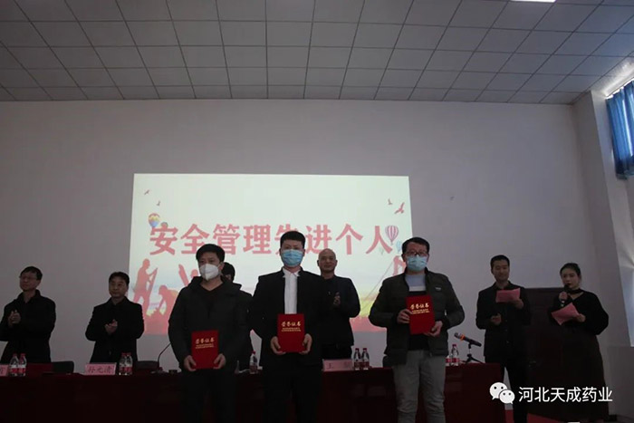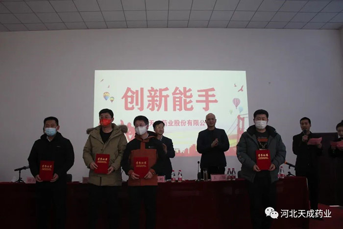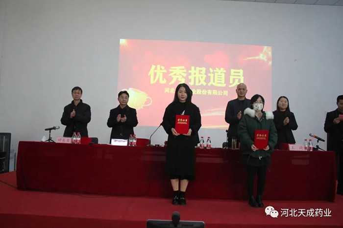 天成藥業(yè)常務(wù)副總經(jīng)理王琦宣讀《對(duì)生產(chǎn)復(fù)方對(duì)乙酰氨基酚片表現(xiàn)突出人員表彰決定》