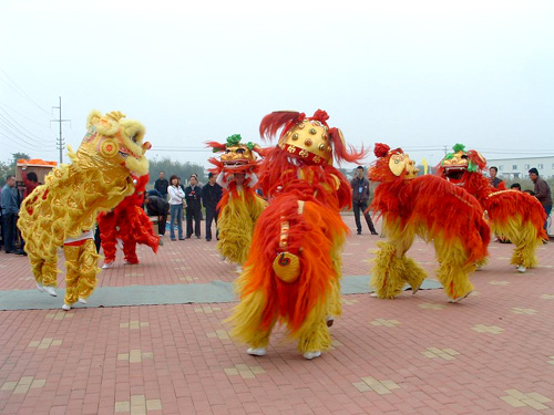 公司邀請曾在奧運會上表演的劉吉舞獅團為慶典助興