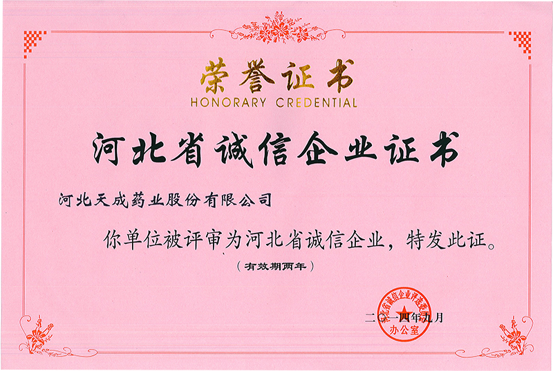 天成藥業(yè)被評(píng)為誠(chéng)信企業(yè)