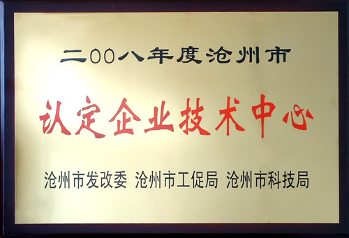 我公司被滄州市發(fā)改委、滄州市工促局、滄州市科技局聯(lián)合認(rèn)定為2008年度企業(yè)技術(shù)中心。近日,獎牌下發(fā)到公司。這是繼我公司被評為“河北省高新技術(shù)企業(yè)”、“滄州市高新技術(shù)先導(dǎo)企業(yè)”之后,政府部門再次對我公司多年來一直致力于新技術(shù)研發(fā)和投入的肯定。這一稱號的取得,也會為企業(yè)帶來一定的政策支持。