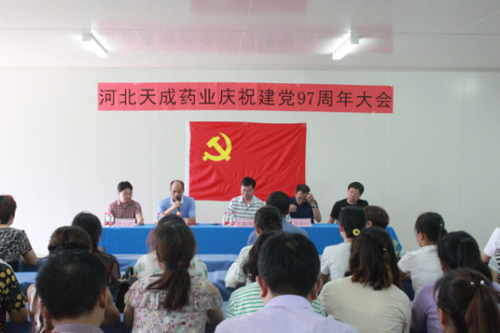 6月29日,中共河北天成藥業股份有限公司黨總支部委員會,在三分廠黨員活動室召開慶祝建黨97周年大會。