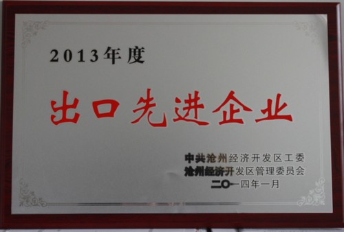 2014年榮獲“2013年度出口先進企業” 榮譽稱號